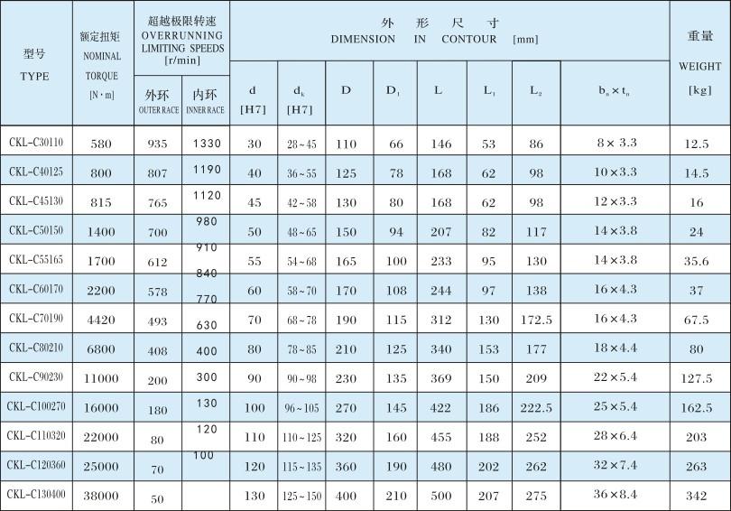 CKL-C楔塊式單向離合器